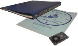cassette tape, a coordinator's manual, a time log worksheet, and student work
